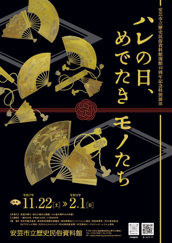 令和7年11月22日(土)~令和8年2月1日(日)の期間、安芸市立歴史民俗資料館にて安芸市立歴史民俗資料館40周年記念特別展Ⅲとして「ハレの日、めでたき モノたち」を開催します。