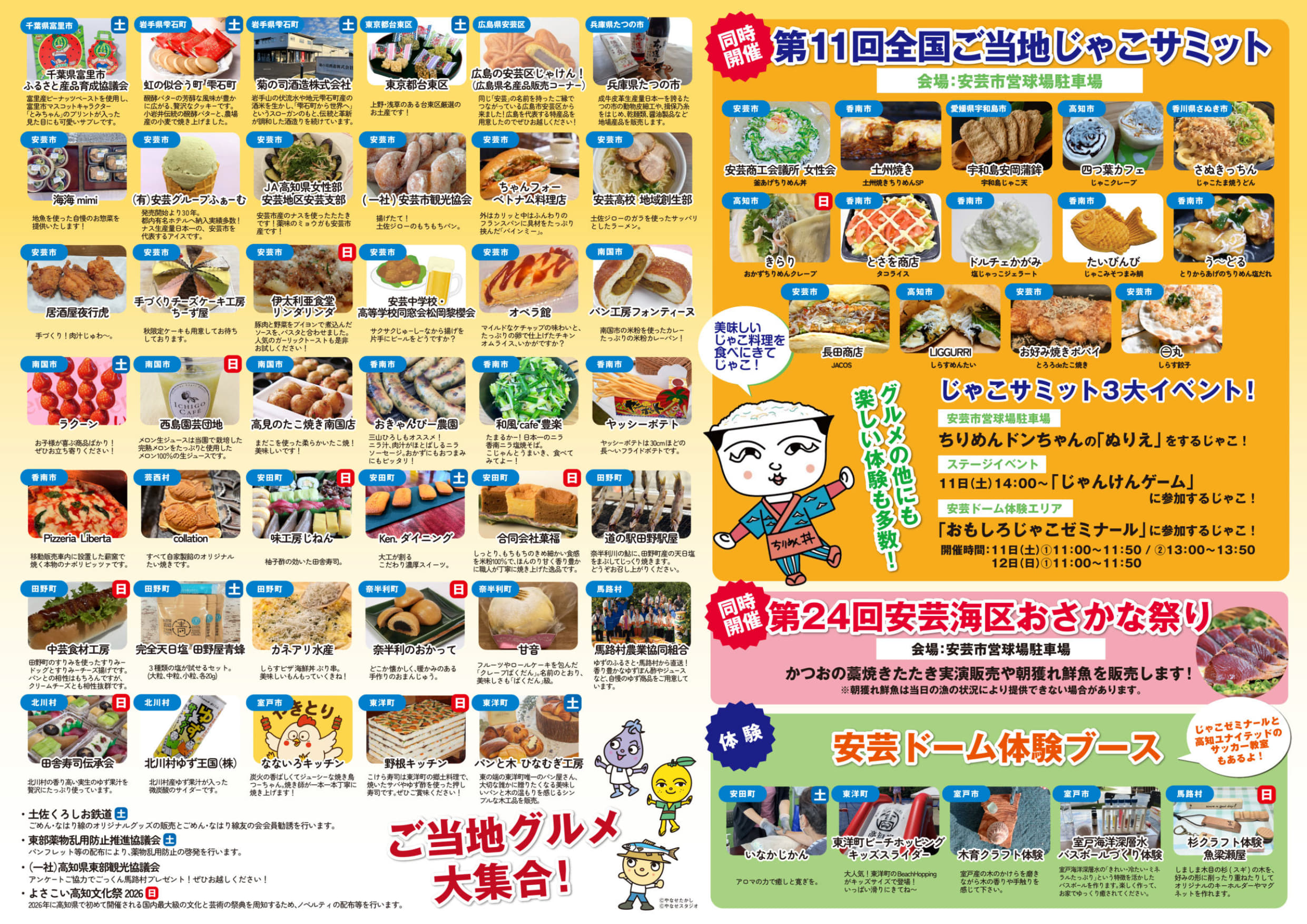 南国市から東洋町までの11市町村などが代表的なご当地グルメやB級グルメを出店するグルメの祭典です‼